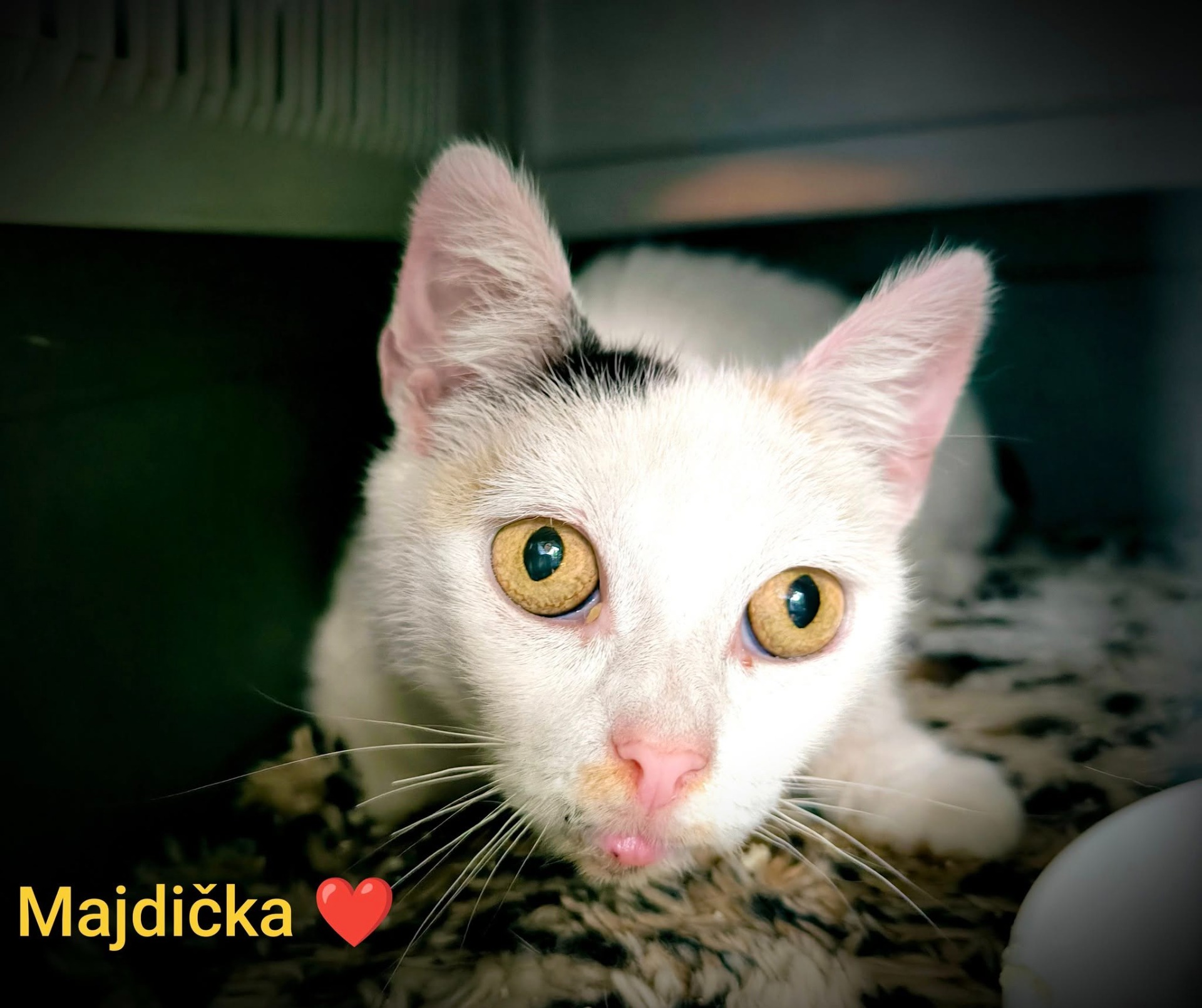Majdulka se narodila na zahradě pána, který ji odchoval. Z Majdulky se stala úžasně mazlivá kočička, která ale měla každý rok koťátka. Poslední vrh jsme zachytily jen čistou náhodou, kdy zájemce odnášel koťátko v náručí podél silnice a málem nám vstoupil před auto. Tak jsme se dozvěděly o koťátkách a o mamince Majdulce. Když jsme ji poprvé spatřily, vyhrkly nám slzy do očí. Majdulka byla kost a kůže, měla potrhaná ouška s mnohačetnými zraněními, stržení spodní ret a prodělala masivní úraz břicha, po kterém zůstal velký hematom. Co víc, měla zbytky kostřiček nenarozených miminek uvnitř dělohy. Ukázalo se, že to není výčet všeho, čím si Majdulka prošla bez povšimnutí okolí. Měla špatné jaterní markery, které jsme daly dohromady, ale ledvinové markery... s těmi zápasíme dodnes. Majdulí by potřebovala skutečný DOMOV. Domov se vším všudy, kde se o ni postarají a a bude zde na dožít. Nejlépe domeček se zahradou v klidné lokalitě, protože 7 let žila venku. A to jí moc chybí. Sebou by ráda vzala Lučinku, která je po zkušenostech s brzkým odběrem ze všech nejplašší. Lučinka bez maminky prostě nezvládá existovat. ty dvě patří k sobě jako slunce a nebe.